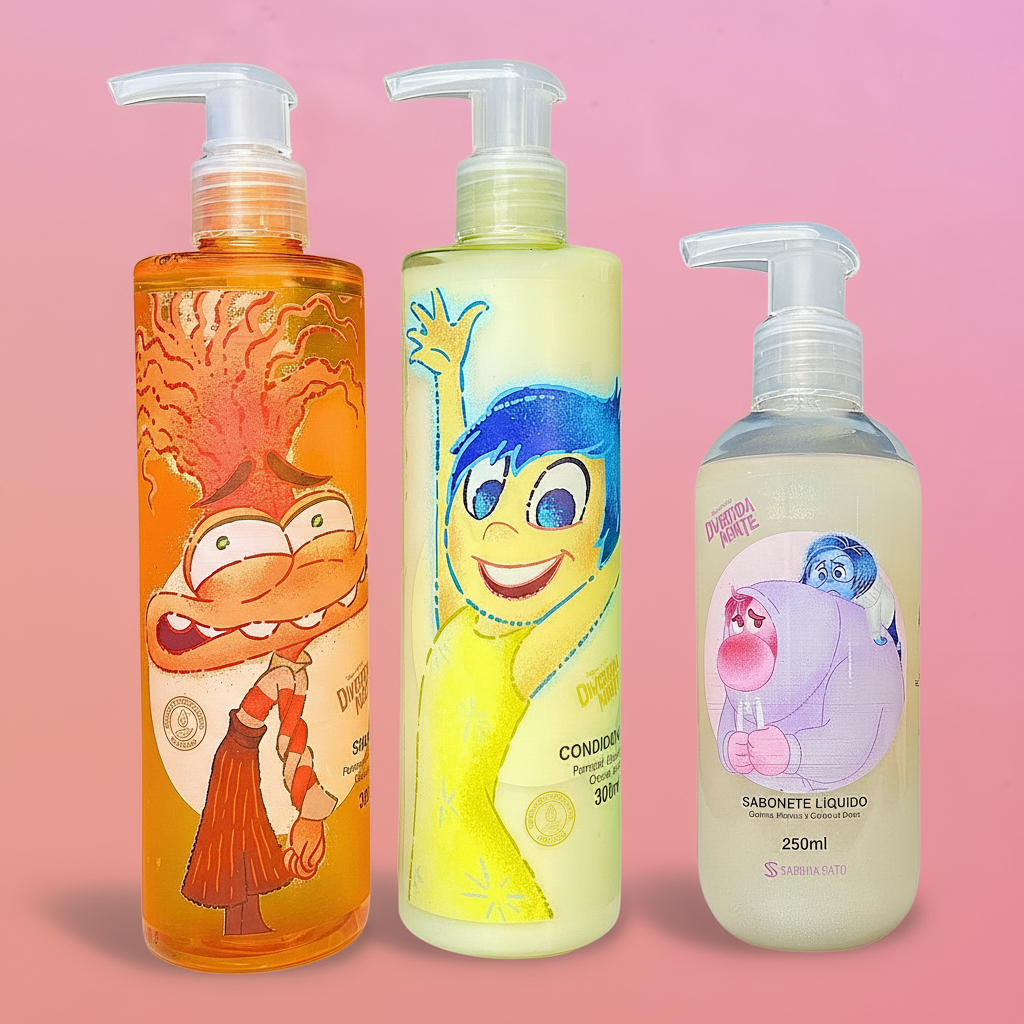 O Kit Shampoo, Condicionador e Sabonete Vergonha e Tristeza Divertida Mente & Sabrina Sato é composto por: